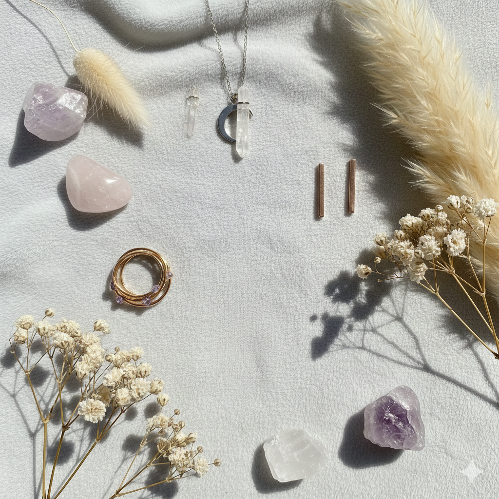Each piece is thoughtfully chosen to support emotional balance, calm, and self-love — not just as jewelry, but as a quiet reminder to slow down and return to yourself.